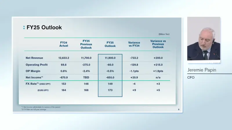 單就第三季(10-12月)而言,合併營收為2兆9,993億日圓,營業利益175億日圓,稅後淨損283億日圓。公司指出,第三季營業利益轉正,反映固定成本削減與變動成本改善措施已逐步顯現成效。