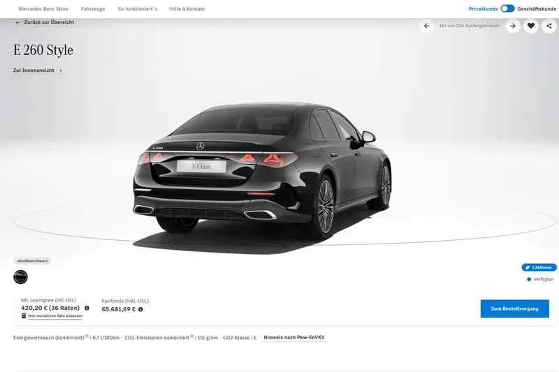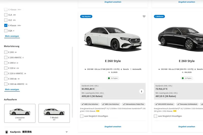 熟悉Mercedes-Benz全球產品佈局的讀者應知,除中國以外市場的E-Class(包含轎車、旅行車及All-Terrain)主要產地皆位於德國辛德芬根廠區的第46號廠房。而中國北京奔馳則專責供應中國本土市場。但,最近德國CPO網站上出現23輛E 260 Style,似乎把中國特供車拿到德國賣。