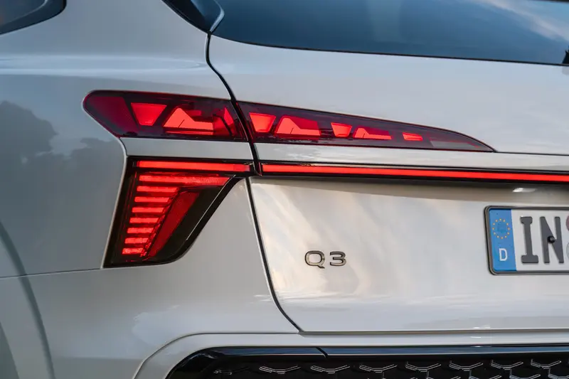 三代Q3採用分離式的頭燈,上方為可切換四種光形變化的LED日行燈,下方為主要照明燈具。並首次導入全新micro-LED照明模組,取代舊款的DMD模組。該模組上有25,600個僅40微米的micro-LED組成,40微米差不多頭髮粗細的一半。官方宣稱,micro-LED技術可改善車外照明,特別是當車外天氣條件惡劣下。車款提供數位OLED尾燈作為選配套件,並輔以橫貫式LED燈帶連接兩側燈具,營造出橫貫式尾燈的視覺感受。選配的OLED尾燈總共36發光單元,他們被區分6個數位OLED面板,藉此營造出多變的光行變化。