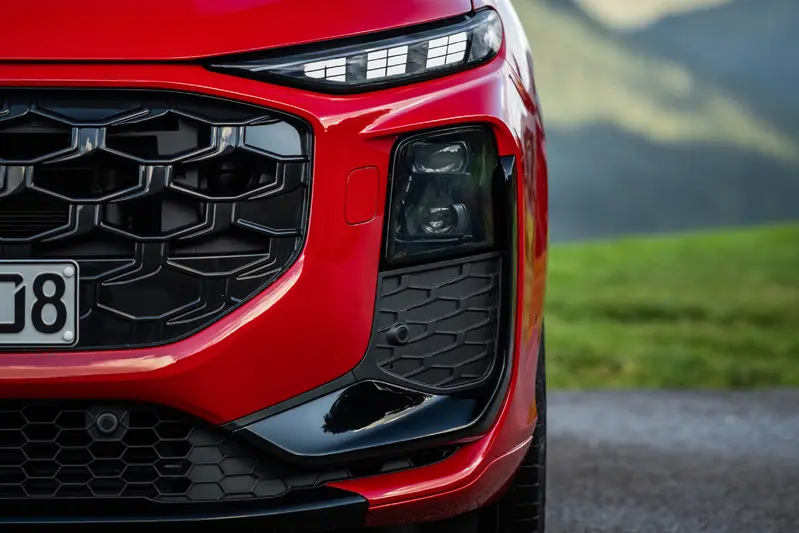 全新第三代Audi Q3換上品牌最新家族式設計語彙,最醒目的特徵在於車頭換上八角形單體式水箱護罩,並配合銳利的LED頭燈組(高階車型提供 Matrix LED 矩陣式技術)。尺碼方面,三代車型較前代顯著放大。車長增加97mm達到4,485mm,車寬增加 18mm達到1,856mm,軸距則拉長77mm來到2,681mm。尺碼的增長直接回饋於車室空間,尤其是後座乘客的膝部空間獲得改善。三代Q3的風阻係數降到0.30Cd,並首次提供前窗雙層玻璃作為選配套件,預計能提升車艙靜謐性,官方宣稱這是同級唯一的創舉。