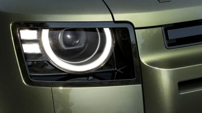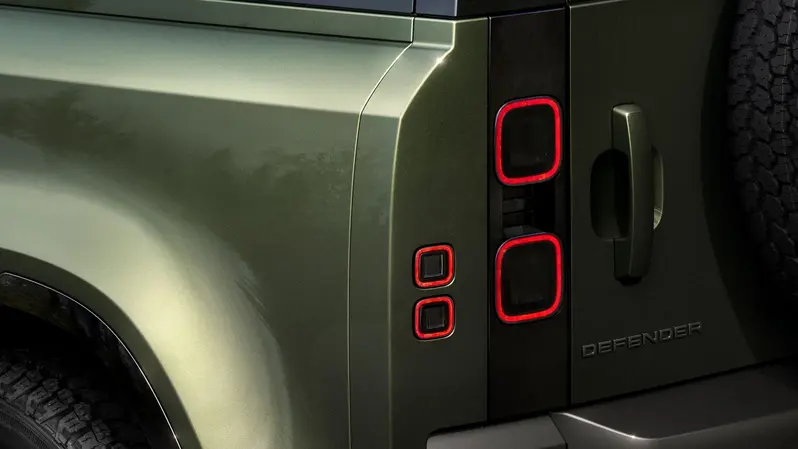 全新 26 年式 Defender 重新設計的頭燈,展現更加清晰明亮的嶄新光型,優化機能性的嵌入式尾燈則採用燻黑處理,線條更加簡潔並且提升能見度。