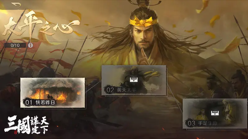 在「太平之心」話本中,玩家可以選擇「(英雄)張角」、「(英雄)張寶」、「(英雄)張梁」三位英雄武將其一納入帳下。
