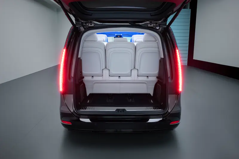 空間管理展現了 VLE 兼顧家庭與商務的多面性。專利的 Roll & Go 系統為手動座椅配置滑輪,車主可輕鬆將座椅卸下並如行李箱般滾動存放。而針對高端客群,電動調節座椅則支援遠端空間調節功能。透過手機 App,車主能像指揮芭蕾舞般,遠端操作座椅前後移動或摺疊。無論是追求極致腿部空間的總裁模式,或是極大化載物容積(最高可達 4,078 公升)的「行李模式」,皆能一鍵完成切換。