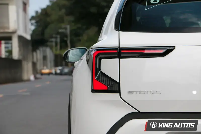 車尾最顯眼的視覺焦點,在於同樣導入 Star Map 星圖式 LED 尾燈。這套燈組不僅在夜間展現極高的辨識度,更透過水平延伸的導光條設計,消弭了過往較為圓潤的視覺感受,改以俐落的線條勾勒出更具大車感的寬厚姿態。車尾後斜面加入了更為顯眼的空氣分流設計。這項改進讓 Stonic 的風阻係數由原先的 0.32 降至 0.31 Cd。