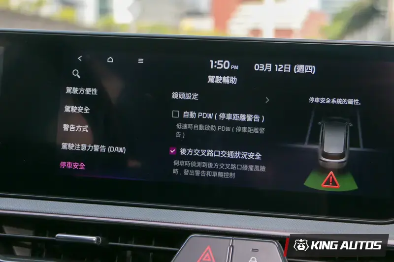 全新12.3吋螢幕可以顯示多項資訊,其中最常使用的是倒車顯影畫面。畫質還可以,車身指示線讓我更放心的倒車。右邊是雷達指示,這台車沒有環景,以雷達取代。
