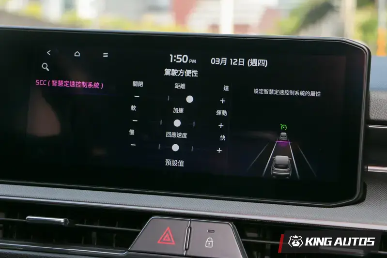 在中央控台的操作介面方面,改用旗艦車款同款的一鍵切換數位控制面板。將空調系統與多媒體快捷鍵整合於同一塊觸控面板上,簡化實體按鍵的繁複感。空調系統維持單區恆溫設定,確保基礎的座艙舒適度;而引擎啟閉按鍵則重新配置於排檔座前方,不僅更好的操作,也讓整體視覺感更趨現代化。