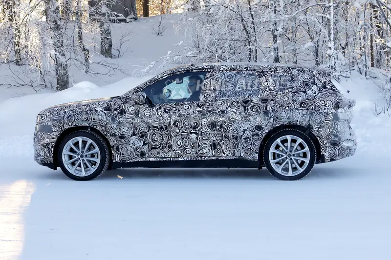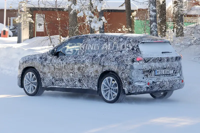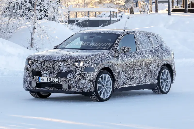 從目前曝光的 iX1 原型車觀察,車頭造型將有顯著變革。原本垂直比例較大的雙腎型水箱護罩,將改為更趨細長的幾何輪廓,並與重新設計的頭燈組橫向連結。兩者之間預計採用對比色飾板進行整合,並可能具備背光照明功能以提升科技辨識度。
