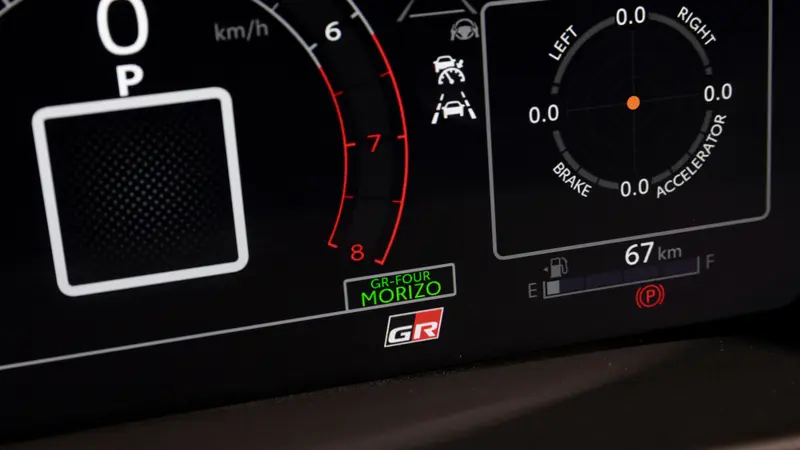 全新 GR Yaris MORIZO RR 搭載專屬的「MORIZO」四輪驅動控制模式,直接取代基礎車型上配備的「GRAVEL」模式。這套設定可提供最佳的初始扭力和驅動力分配,將前後軸各佔 50:50,讓動力更平均、更可控。在這樣的分配下,車輛在紐柏林賽道上的行駛表現更穩定,面對高速彎、連續彎都能維持抓地與節奏,確保駕駛能把節奏掌握在手上。