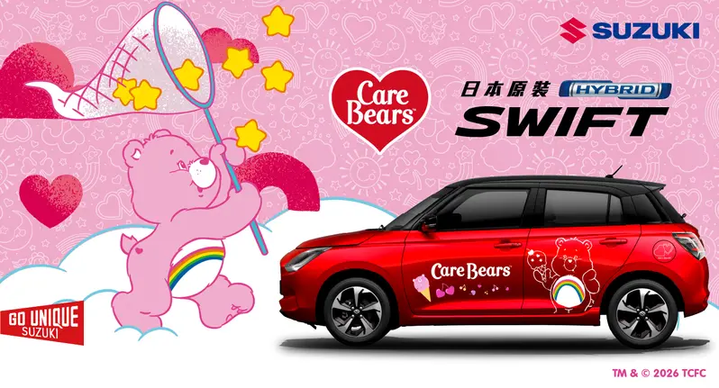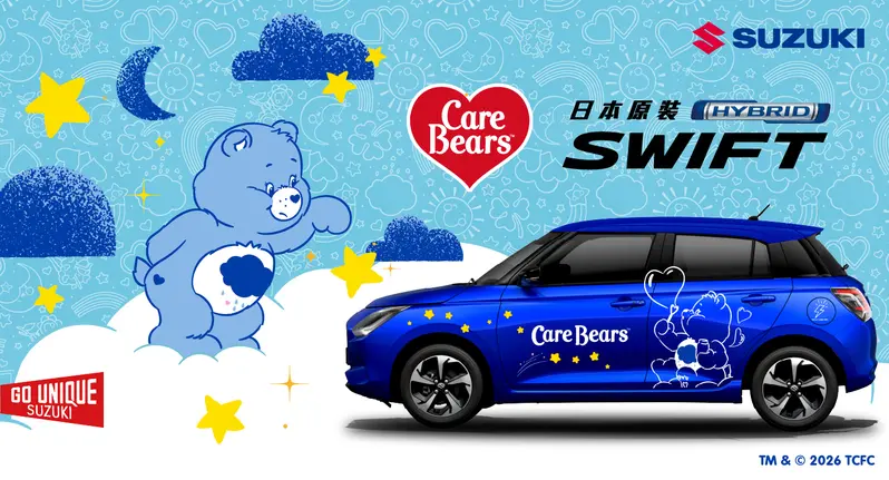 史上最萌聯名!彩虹熊 Care Bears 攻佔《Suzuki Swift》開出去回頭率 200%!