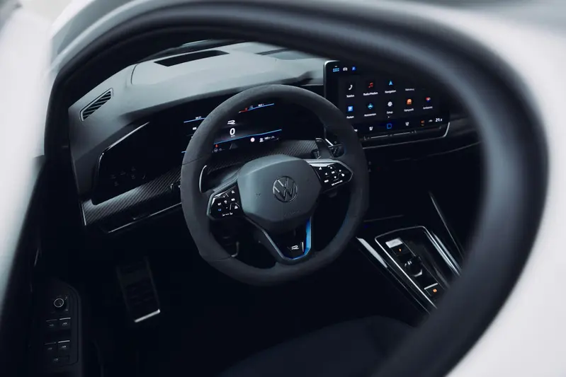 此外,該車標配的 R Performance 性能套件 更將極限向上推升。電子限速提升至 270 km/h,並納入專為極限測試開發的「紐柏林賽道模式」與「飄移模式」。後者最高可分配 100% 扭力至後軸單側,讓駕駛者能體驗前所未有的動態樂趣。配合降低 20mm 的 DCC 主動式底盤控制系統與大型擾流尾翼,Golf R 夜幕疾行版無論在賽道挑戰或是山徑馳騁,皆展現了德系性能工藝的高水準表現。