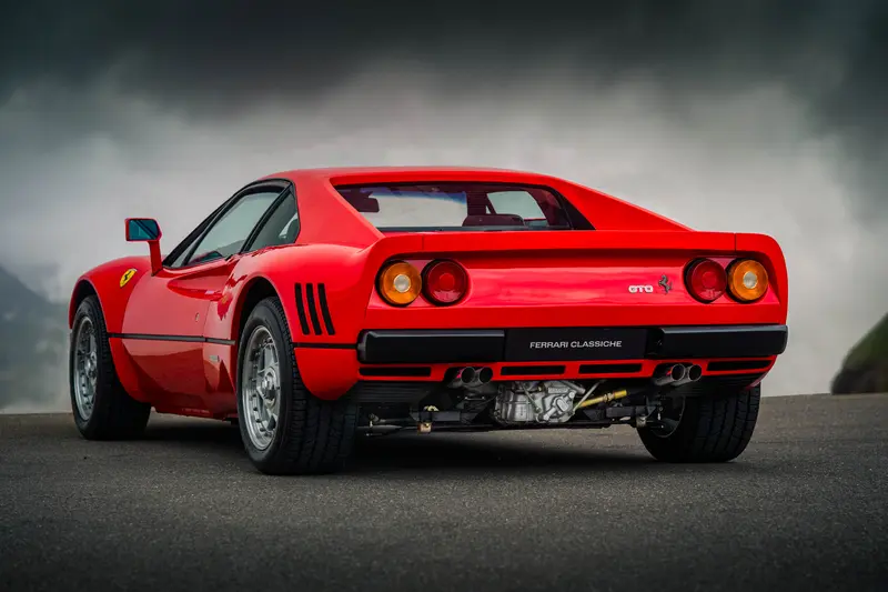 外型設計上,288 GTO 以 Ferrari 308 為基礎延伸,但車身更寬、更低,並加入大量進氣孔與空力元素。整體視覺既保留經典比例,又帶有濃厚的賽車氣息,可以說是 Ferrari 從傳統跑車邁向現代超跑的關鍵過渡。