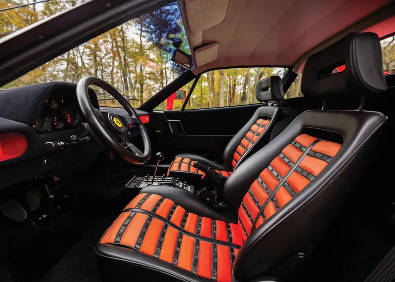 動力方面,288 GTO 搭載一具 2.9 升 V8 雙渦輪增壓引擎,最大輸出約 400 匹馬力。在 1980 年代初期,這樣的數據已經非常驚人,也讓它成為當時世界上最快的量產車之一。與後來更狂暴的 F40 相比,288 GTO 的動力輸出相對線性,但渦輪帶來的爆發感依然相當鮮明。