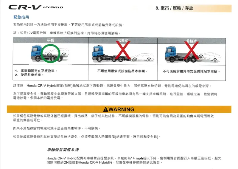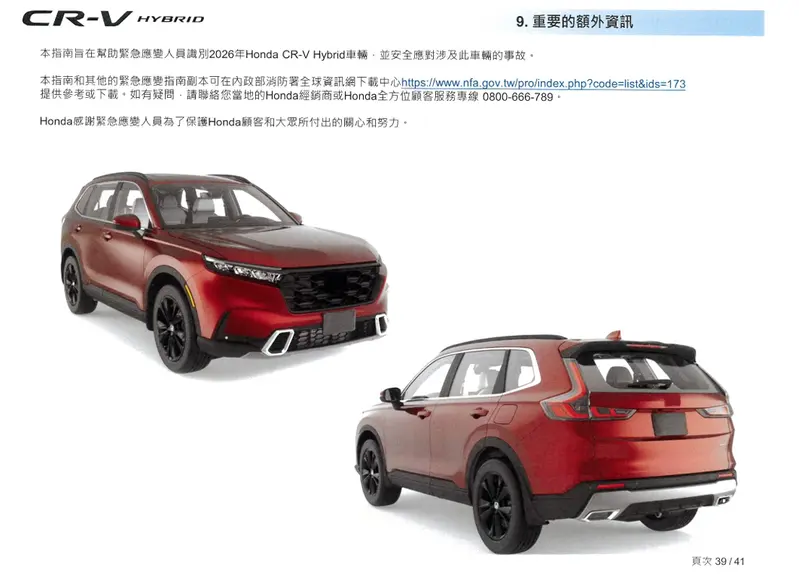 只能全拖 總重逾2.3噸!台本《Honda CR-V e:HEV》緊急救援手冊曝光
