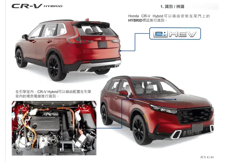 台灣本田現行款國產Honda CR-V的庫存已經見底,大概這個月賣完就沒了。緊接而來的是小改款車型,儘管台灣本田先前否認小改款CR-V將在本(3)月底接單的傳聞,但也許就是下(4)個月。最近,電動車/油電車緊急救援手冊資料庫中,出現HONDA-台灣本田股份有限公司-車型:CR-V e:HEV -緊急救援手冊,讓我們可以早一步得知這輛車的硬體配備。