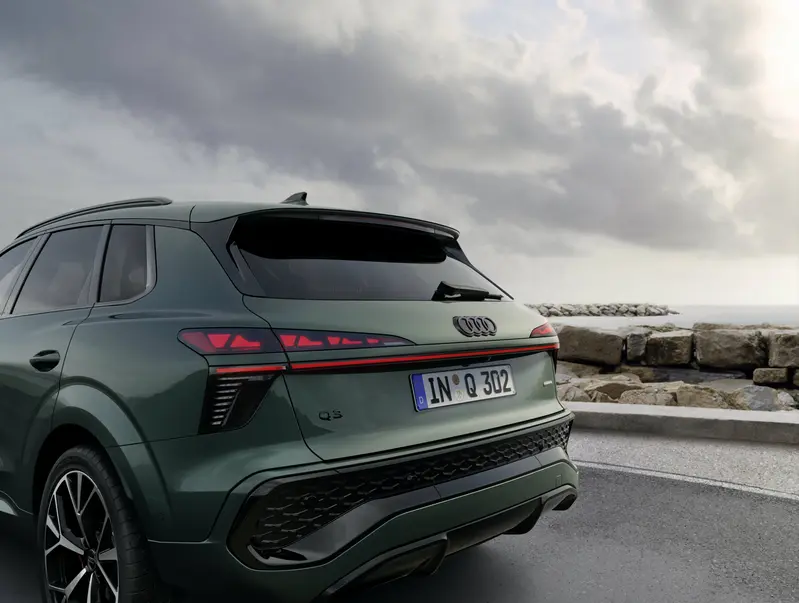外觀設計方面,全新 Q3 展現出更具張力的視覺特徵。車頭換裝新世代分離式頭燈組,搭配橫幅 3D 寬體水箱護罩,強化了都會跑格的侵略感;車身側邊則透過俐落的摺線處理,在光影交織下勾勒出豐富的層次感,提供駕駛者兼具實用空間與個性化造型的選擇。
