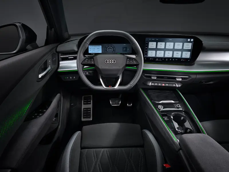 車艙內部經歷了全面性革新,導入品牌最新「Digital Stage 數位舞台」概念。座艙由 11.9 吋 Audi 虛擬座艙儀表與 12.8 吋 MMI 觸控顯示幕串聯而成,呈現全景式的數位化介面。設計細節上,新車首度採用方向機柱雙撥桿設計,將排檔與燈光控制整合,操作更為直覺,並釋放出中央鞍座的收納空間。系統軟體則相容 Apple CarPlay 與 Android Automotive OS,支援網路熱點連線以使用 YouTube、Spotify 等應用程式,滿足現代數位生活需求。