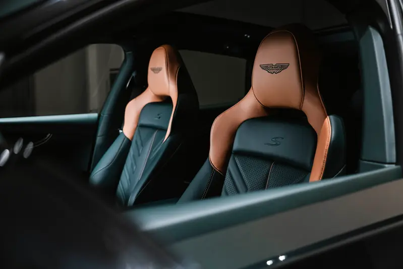 座艙內部延續品牌新世代的平衡哲學,大量運用 Alcantara 與頂級真皮材質。專屬的「S」字樣椅面採用人字飾紋與打孔工藝,展現精密的製車工藝。值得一提的是,座椅頭枕的刺繡需經由 2,500 針精工細作,亦可選配 3D 浮雕工藝,透過高壓技術將翼形廠徽精確塑形於皮革之上。
