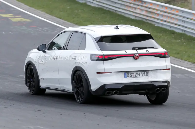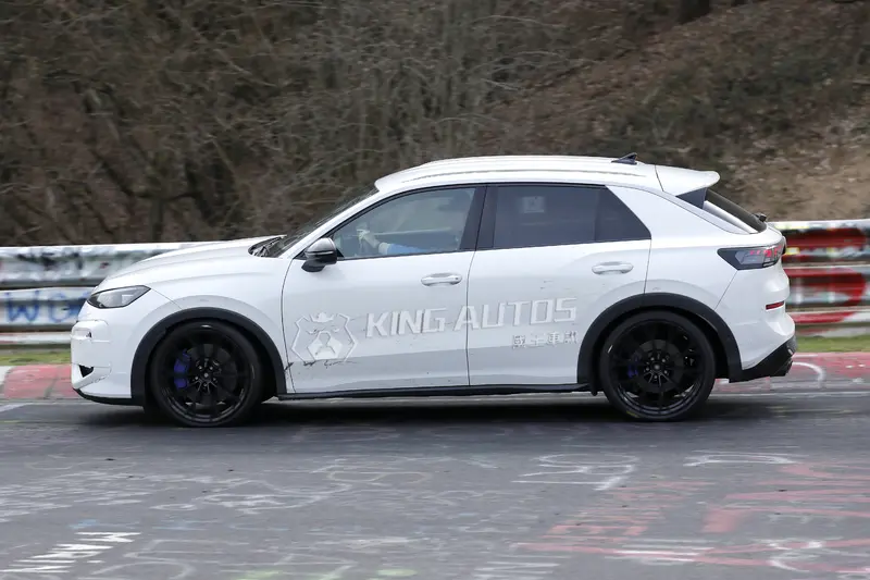 從紐柏林賽道捕捉到的間諜照觀察,新一代 Volkswagen T-Roc R 的車頭造型明顯更為剽悍,加大的氣壩與線條鋒利的進氣口設計,展現出強烈的競技氣息。由於保桿造型更為突出,預計新車的長度將微幅增加,使整體視覺感更為低趴。
