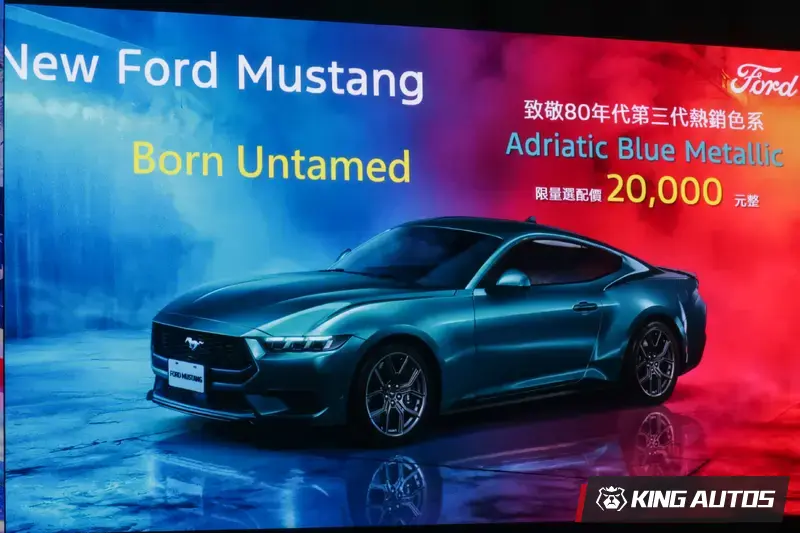 同時,Ford Mustang搶先曝光全新限量車色「Adriatic Blue Metallic」,該車色靈感源自於Ford 1980年代初期第三代 Fox Body Mustang風靡一時的暢銷色系,這不僅是向經典致敬,更是讓傳奇經典在當代語境中持續延伸,此新色未來將隨後續年式指定車型(EcoBoost Premium及GT Premium)導入台灣市場,限量升級選配價新台幣2萬元,即可收藏具有傳奇歷史意義的稀有色彩。