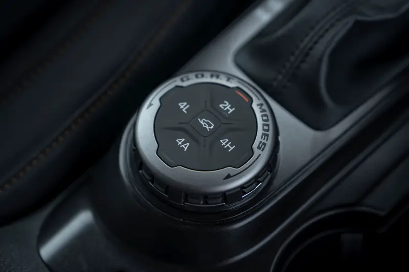 車艙內部則以 12 吋數位儀表與 12 吋 LCD 觸控螢幕作為核心,結合最新一代 SYNC 4 資訊娛樂系統,建構出充滿現代感的數位座艙。在舒適性配備上,標配的前排加熱座椅與雙區恆溫空調確保了全天候的乘坐體驗;同時,Ford Co-Pilot360 駕駛輔助科技的全面導入,包含盲點偵測、車道維持輔助與自動緊急煞車系統,為這台越野悍將在鋪裝道路行駛時提供更全方位的安全防護。