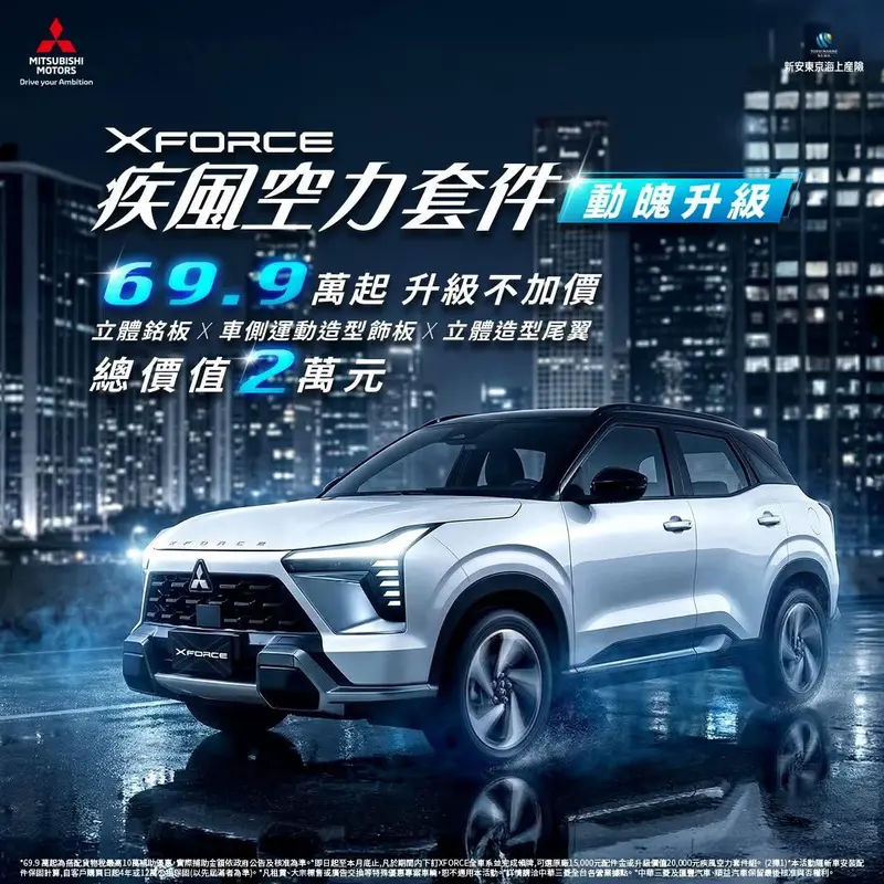 作為品牌現階段的戰略核心,XFORCE 本月針對追求個性的買家祭出重磅誘因。凡入主全車系,車主可依個人需求在 15,000 元原廠配件金 或 「日本原廠疾風空力套件組(包含XFORCE立體銘板、車側運動造型飾板、立體造型尾翼,共三項配備)」 之間進行二擇一,後者預計將為這款跨界 SUV 增添更強烈的運動視覺張力。在價格策略上,結合舊換新補助與貨物稅減徵後,樂享版僅需 69.9 萬起 即可入主;為了導流客群體驗實車,原廠更推出預約來店試乘即贈限量精品咖啡禮盒的專屬回饋。