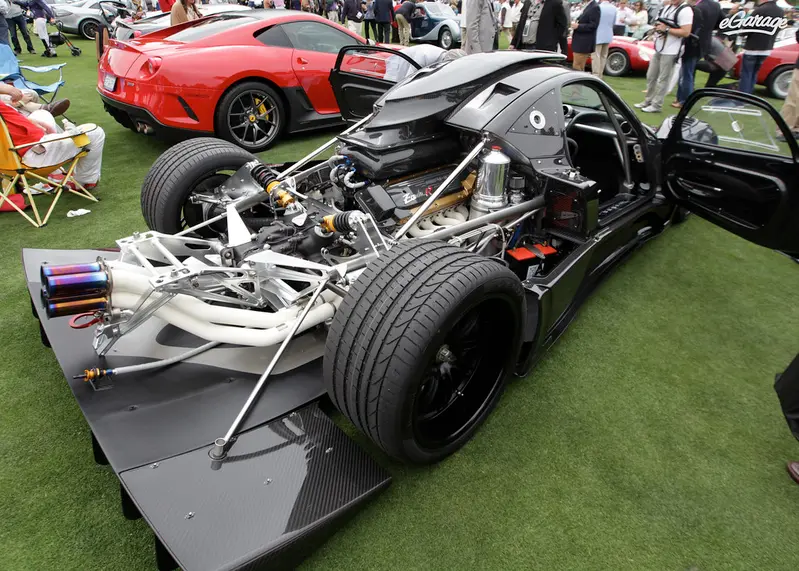 車體結構方面,Zonda 採用碳纖維單體式車艙,並大量使用複合材料,使車重維持在極低水平,同時確保極高剛性。這種對輕量化與結構的極致追求,使它在操控上既精準又直接,幾乎沒有多餘的電子干預,保留最純粹的駕駛回饋。