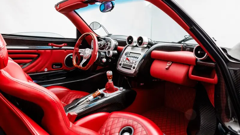 內裝更是 Pagani 的招牌。不同於多數超跑偏向簡潔或科技感,Zonda 的車艙充滿機械美學:金屬切削按鈕、裸露的連桿結構、手工縫製皮革與碳纖維交織,每一個細節都像高級腕錶般精緻,展現極致工藝水準。