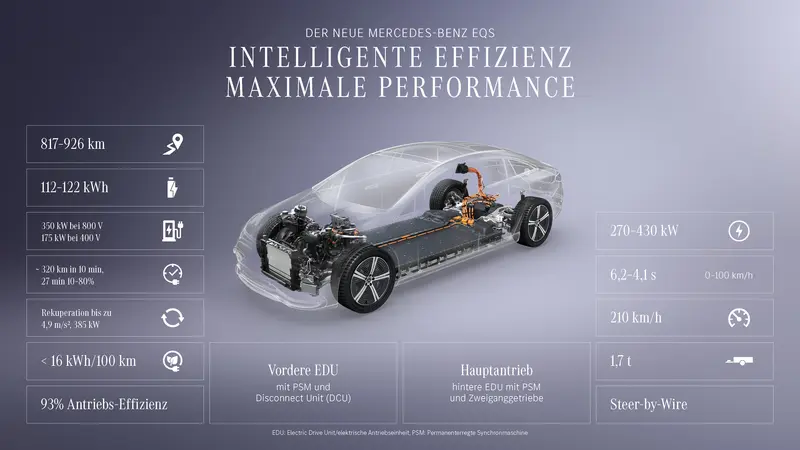 | 最大續航里程 (WLTP) | 926 公里 (EQS 450+) |