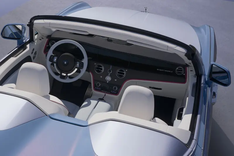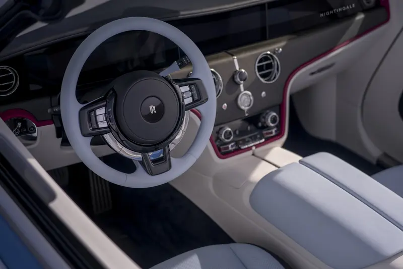 內裝部分,設計團隊將寧靜轉化為視覺藝術。由於電動系統極度安靜,研發團隊將捕捉到的夜鶯鳥鳴聲波頻率,轉化為座艙內的燈光設計。名為Starlight Breeze的套件由 10,500 顆不同尺寸的微型星點組成,從車門內板延伸至駕駛與乘客後方。車內大幅減少實體按鍵,僅保留五組經噴砂與鑽石切割處理的旋鈕控制器,細膩度媲美頂級珠寶。