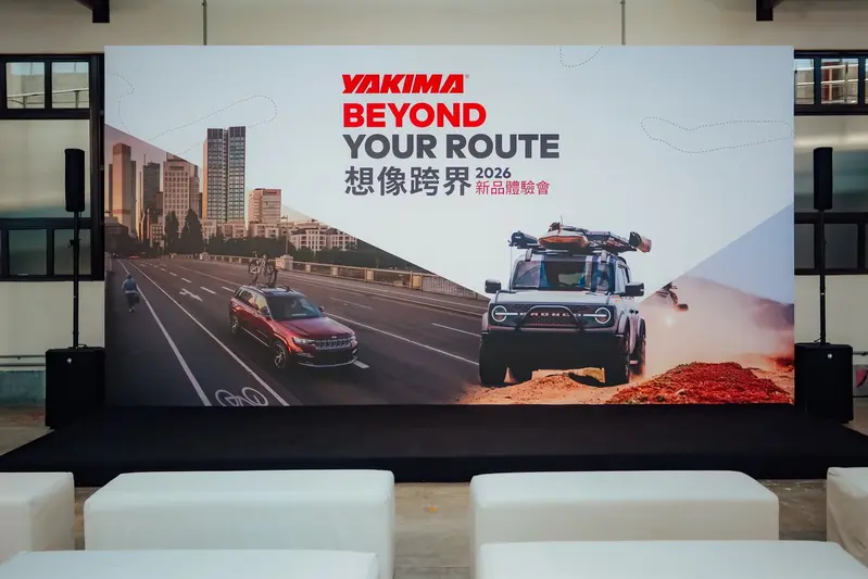 美國車載裝備領導品牌 YAKIMA (14)日在台北南港瓶蓋工廠舉辦「想像跨界|Beyond Your Route」2026 新品體驗會,現場展示多款 2026 明星商品,包括車頂戰術箱、自行車架、車邊帳,與即將推出的隧道型車頂箱。同時宣布推出全新首創的「產品體驗計畫」,在特定通路端導入「先試裝、再購買」的創新銷售模式,解決車主選購時對空間適配與行車安全的焦慮。