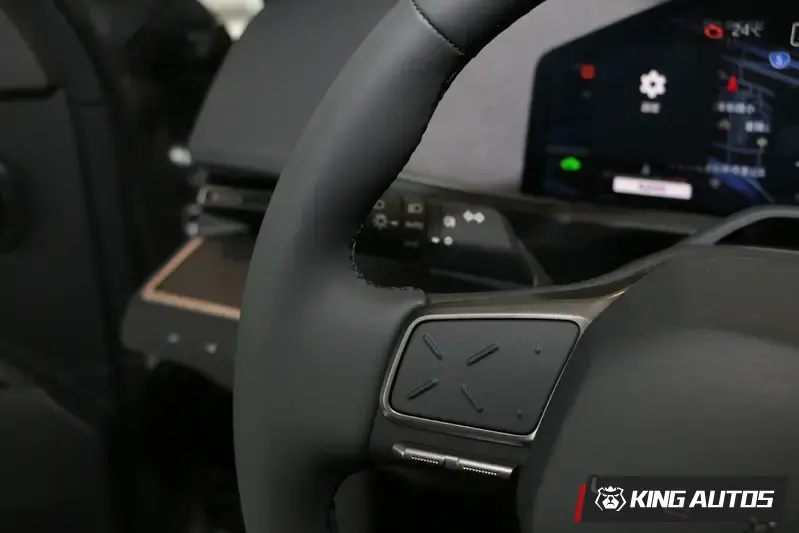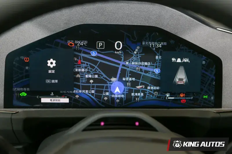 手靠近時答案就揭曉,是空調調整與環景按鍵。雙前座通風與加熱為觸控式調整,位在14吋中控螢幕下方角落。