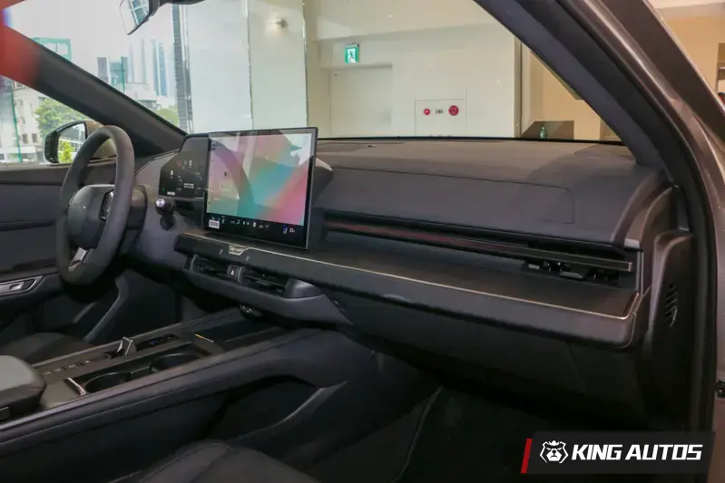 為了達到0.23Cd的優異風阻表現,全新ES在外觀設計上導入了多項技術。採用平整化底盤,大面積的底盤護板能減少車底亂流。車頭的主動式進氣格柵,能根據引擎冷卻需求自動開啟或關閉,降低高速行駛時的正面風阻。車側擾流鰭片,位於後視鏡與尾燈側邊的小型鰭片,有助於引導氣流並提升高速穩定性。最後則是電控式隱藏式車門把手,這項設計在純電版車型上尤為關鍵,能大幅減少側面氣流阻力,藉此提升續航里程。這次在Lexus南港所展示的是ES 300h頂級版,為油電車的頂規車款,配備較入門的豪華版多了PVM環景攝影系統、HUD抬頭顯示器、自動吸附式車門、雙前座通風&加熱功能、64色氣氛燈、單邊的手機無線充電座...等配備。