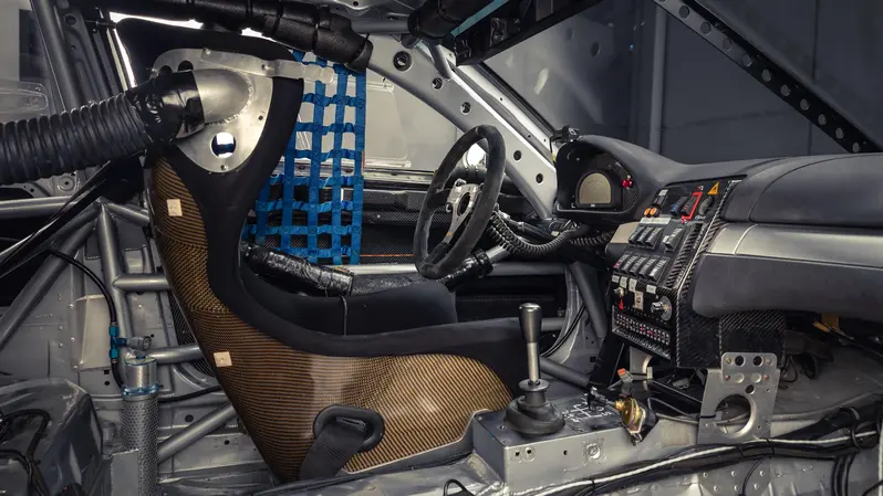 不過,這輛車並非完全虛構。在現實世界中,BMW 確實打造過 M3 GTR,而且是一輛極為純粹的賽車。基於 E46 M3 開發,最大的不同在於它捨棄原本的直列六缸引擎,改搭一具 4.0 升 V8 自然進氣引擎(P60B40)。這項改動讓動力輸出與賽道競爭力大幅提升,也使 M3 GTR 在美國 ALMS 賽事中展現壓倒性實力。