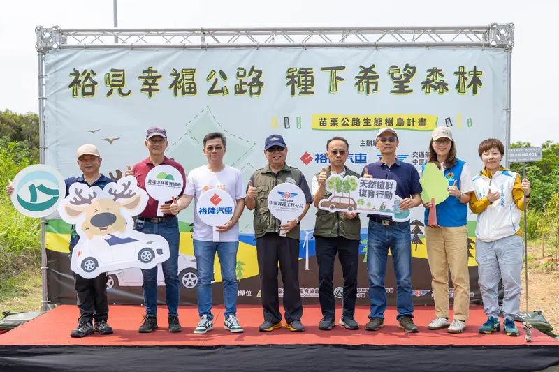 為推動公路環境與生態永續發展,交通部公路局中區養護工程分局於(4/23)攜手裕隆汽車與臺灣山林復育協會,於台61線通霄新埔段推動「裕見幸福公路 種下希望森林-苗栗公路生態樹島計畫」,共同植下1,000株臺灣原生植物,透過原生樹種復育與多樣性植栽方式,打造首座公路沿線的生態樹島,串聯周邊森林棲地,促進恢復生物多樣性,為臺灣淺山森林復育與國土生態綠網建構邁出重要一步。