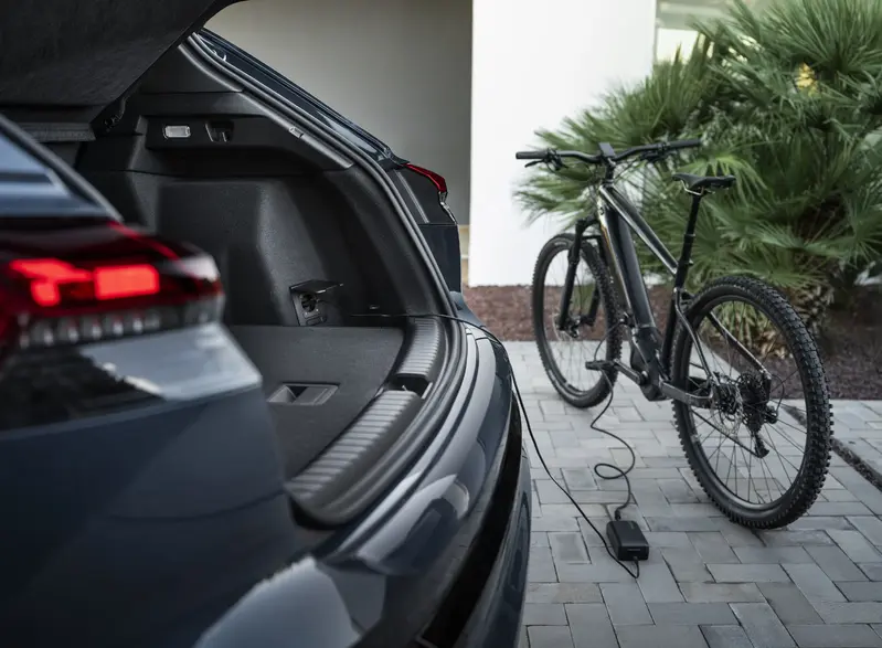 本次改款最大的科技亮點,在於 Q4 e-tron 正式成為 Audi 旗下首款支援雙向充電(Bidirectional Charging)的量產車型。透過 V2L 功能,車輛可變身大型行動電源為電輔車或戶外電器供電;在支援 V2H 規格的市場,更可整合至家用能源管理系統作為儲能電池。