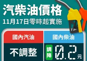 油價快訊|20251117(一)0點起|汽油不調整 柴油降2角