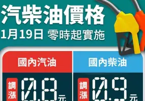 油價快訊|20260119(一)0點起|汽油漲8角 柴油漲9角