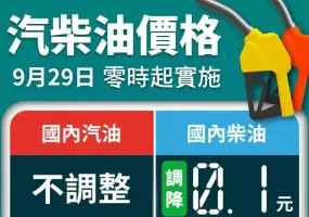 油價快訊|20250929(一)0點起|汽油不調整 柴油降1角