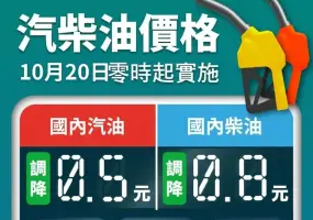 油價快訊|20251020(一)0點起|汽油降5角 柴油降8角